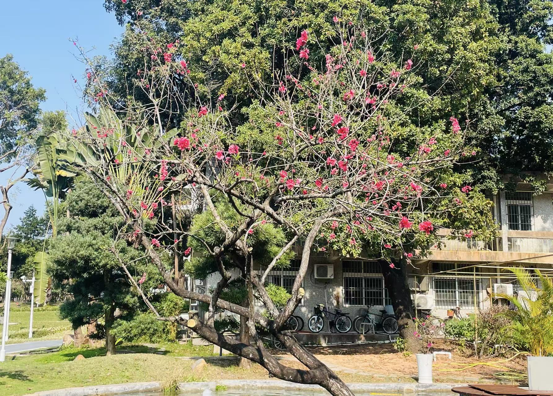 学校花圃里多了棵桃树,也许是我从来没来过。毕业以前的时候,好像也很少像这样走在文山湖边上,水要溅到鞋边。
